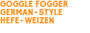 When this brew first came out of the tanks our brewer took a sip. Then downed some more. He put on his glasses, tilted his head and said "Damn, that's a Goggle Fogger!". The "Hefe" prefix means "with yeast" which gives this unfiltered wheat beer a somewhat cloudy or "foggy" appearance. Light aromas of wheat, bubblegum, clove and spice. Very refreshing with light hop bitterness and flavors of wheat, spice, bubblegum and hints of clove.
